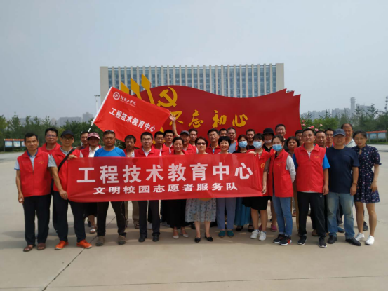 七月骄阳似火,7月10日上午,工程技术教育中心全体教职员工在河南工学院校园开展文明校园志愿者服务活动。全体教职员工在部门领导赵敬云教授的带领下,身穿志愿者红色马甲,手举工程技术教育中心红色旗帜,满腔热忱地投入到文明创建的服务活动中来,河南工学院校园中处处可见教职员工热情服务的身影。